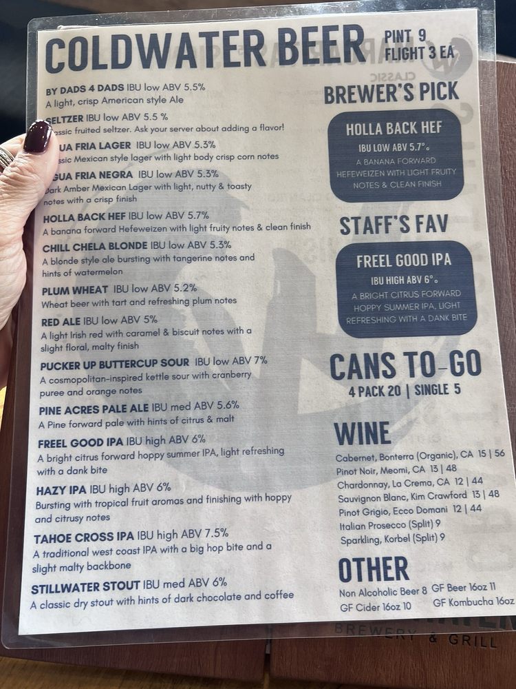 Cold Water Brewery and Grill Menu (2025 Update)